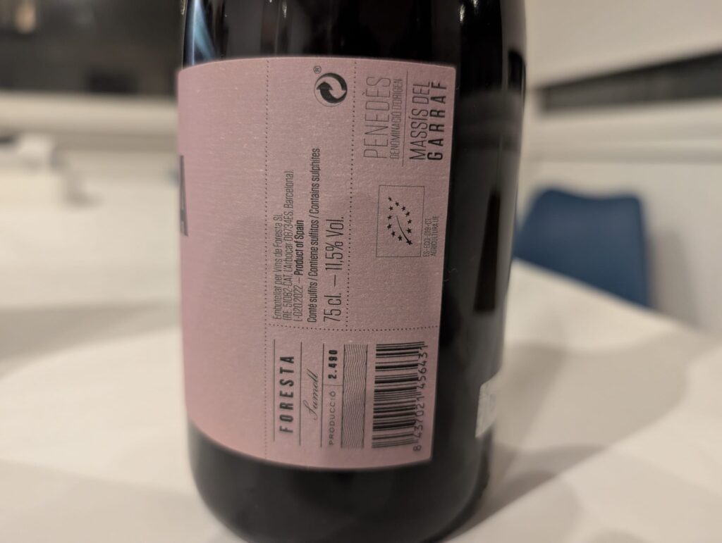 Iba caminando y llegué a una tienda que me llamó la atención: Vinus Brindis, aquí en Barcelona. Grata fue mi sorpresa cuando quien me atendió me dijo que vendían mayoritariamente vinos naturales. Me dejé llevar y terminé comprando una botella de la viña Vins de Foresta (Denominación d’origen Penedès). Me atendió genial.